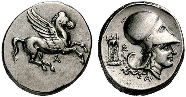 τύπων της Κορίνθου (Πήγασος / κεφαλή Αθηνάς για τους στατήρες). Σε πρώτη φάση